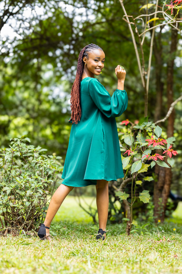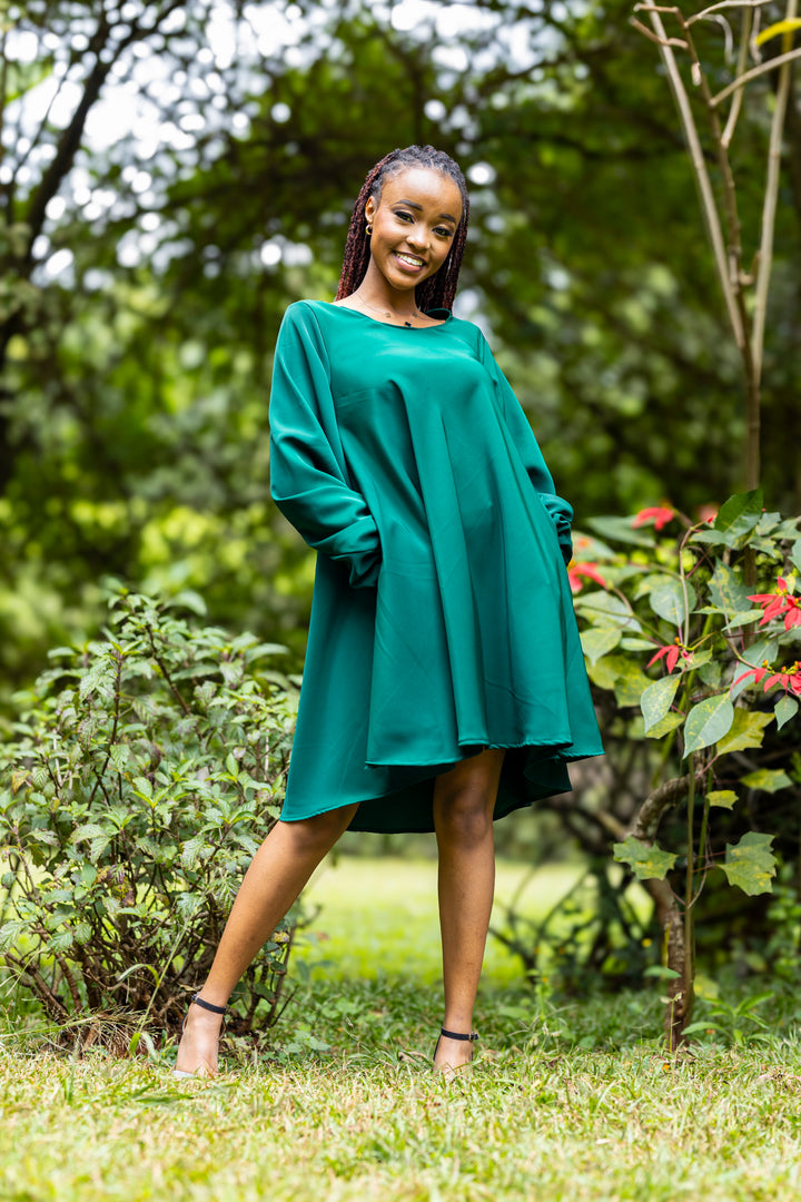 Meet your new favorite staple — the green Long-Sleeved Short Shift Dress, where understated sophistication meets effortless comfort. Crafted in a rich emerald green hue that flatters every skin tone, this dress radiates warmth and elegance with every step.