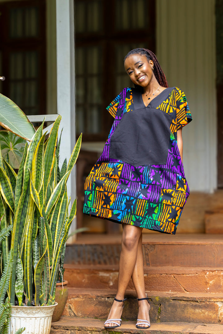 Stay effortlessly stylish and cool in our African Print Short Boubou Dress. Designed for relaxed days and easy movement, this loose-fitting dress offers a flattering, flowy silhouette perfect for casual outings, vacations, or brunch with friends.