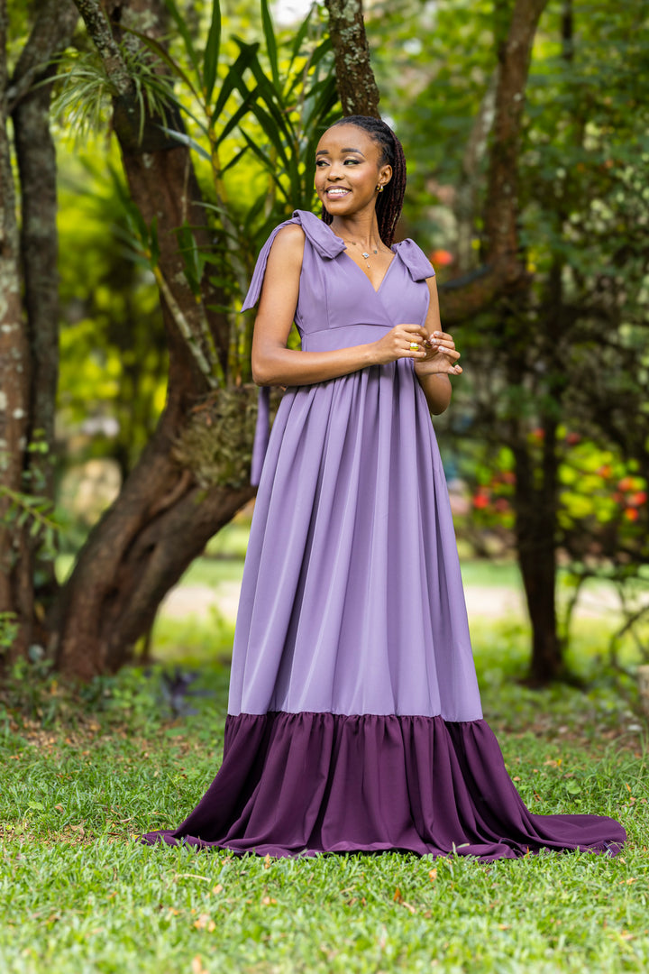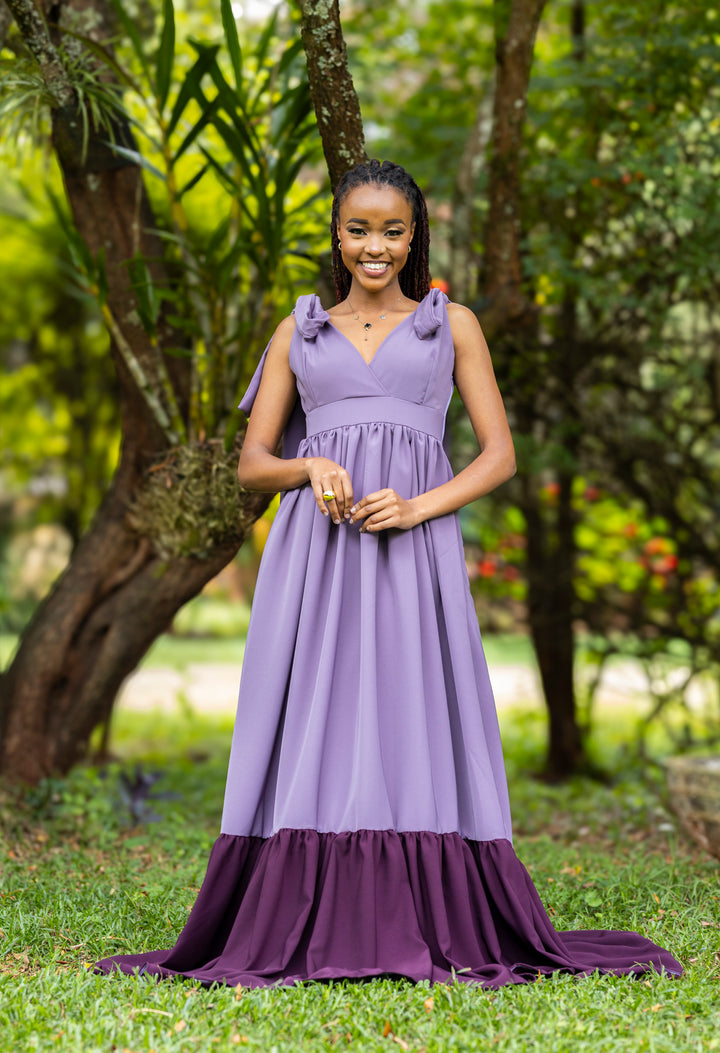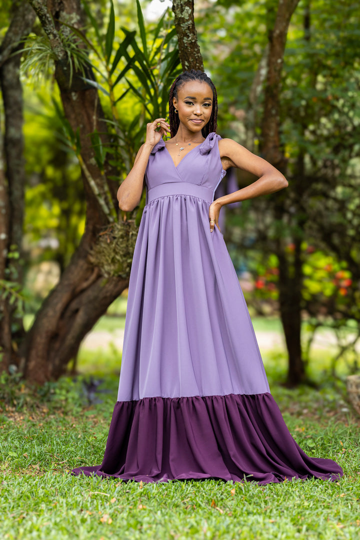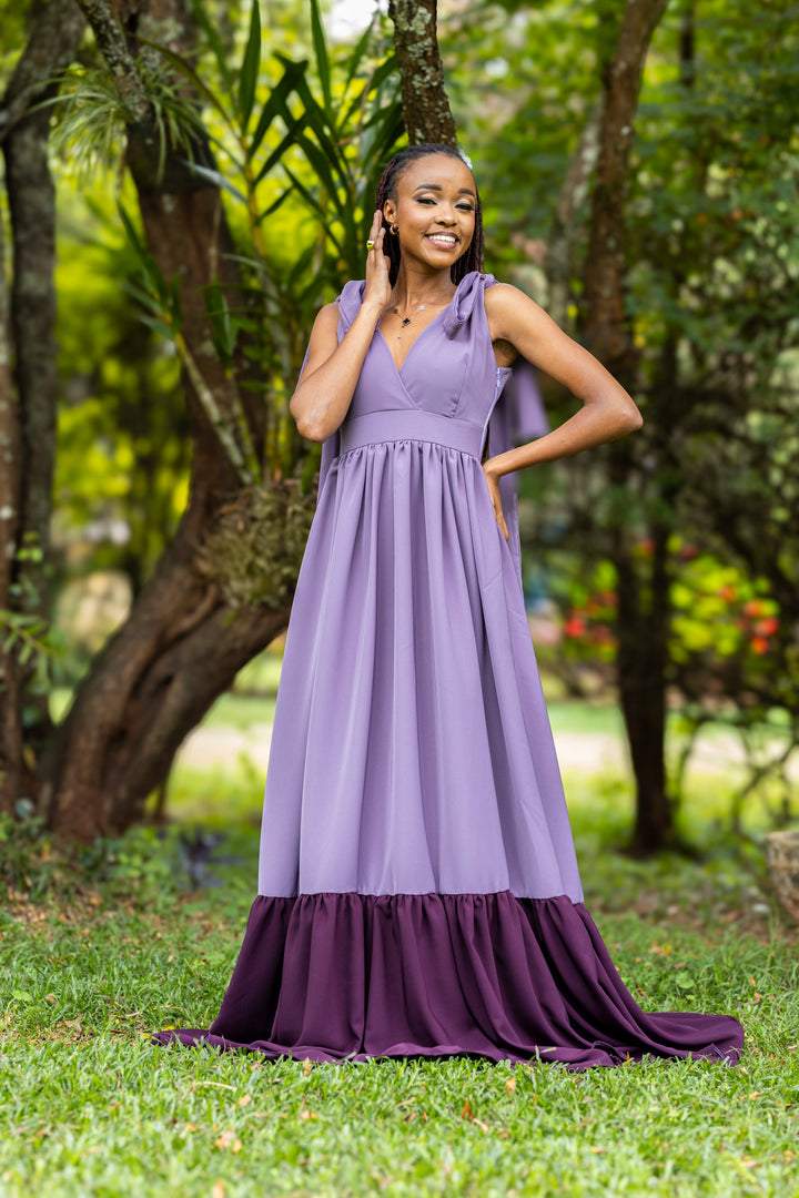 Make a statement in this stunning Subira maxi dress, designed to turn heads with its rich color and flattering silhouette. Featuring a deep V-neckline, cinched waist, and flowy ruffled hem, this dress effortlessly combines elegance with comfort. The feminine bow-tie shoulder straps add a playful and adjustable detail, making this piece as functional as it is beautiful.