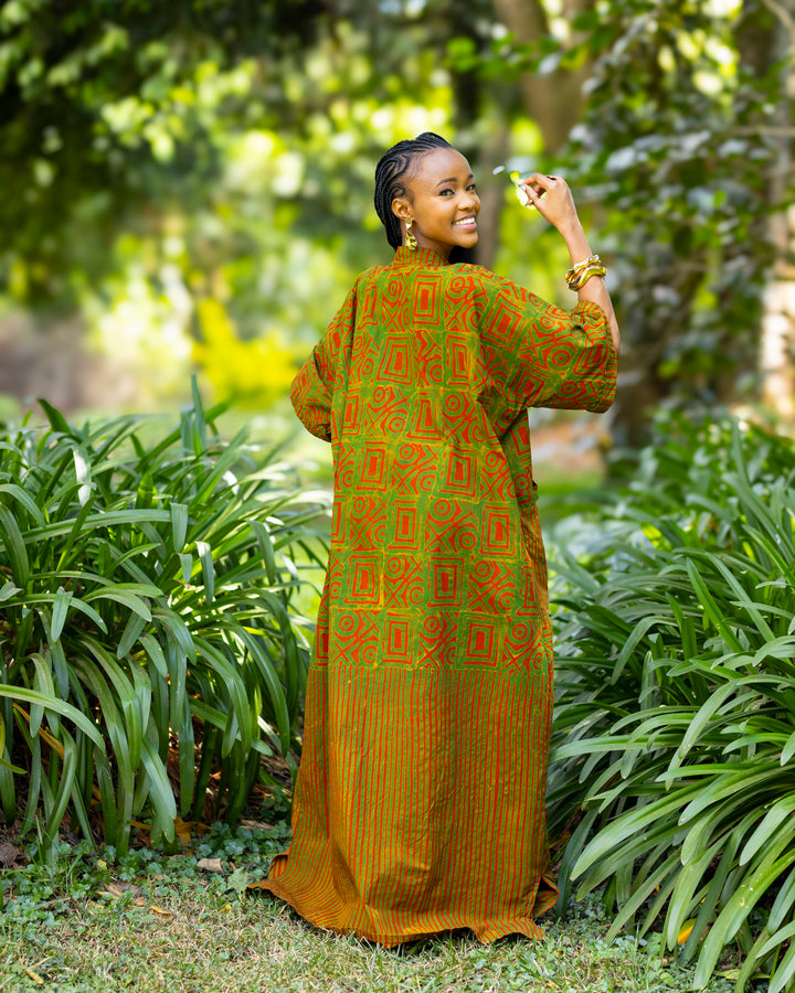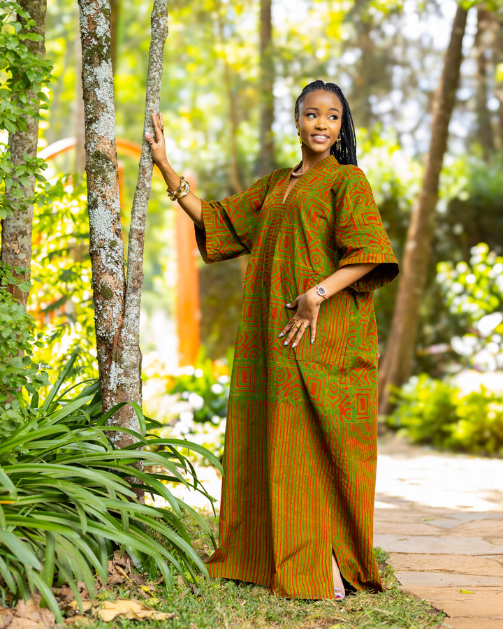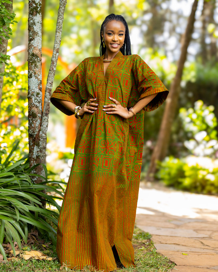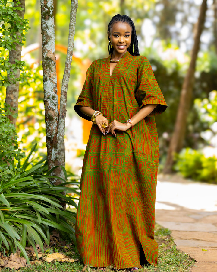 - The Terracotta Kaftan is made from handcrafted batik print on 100% cotton.
