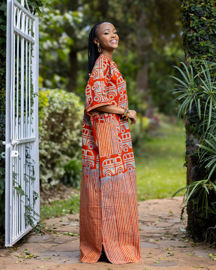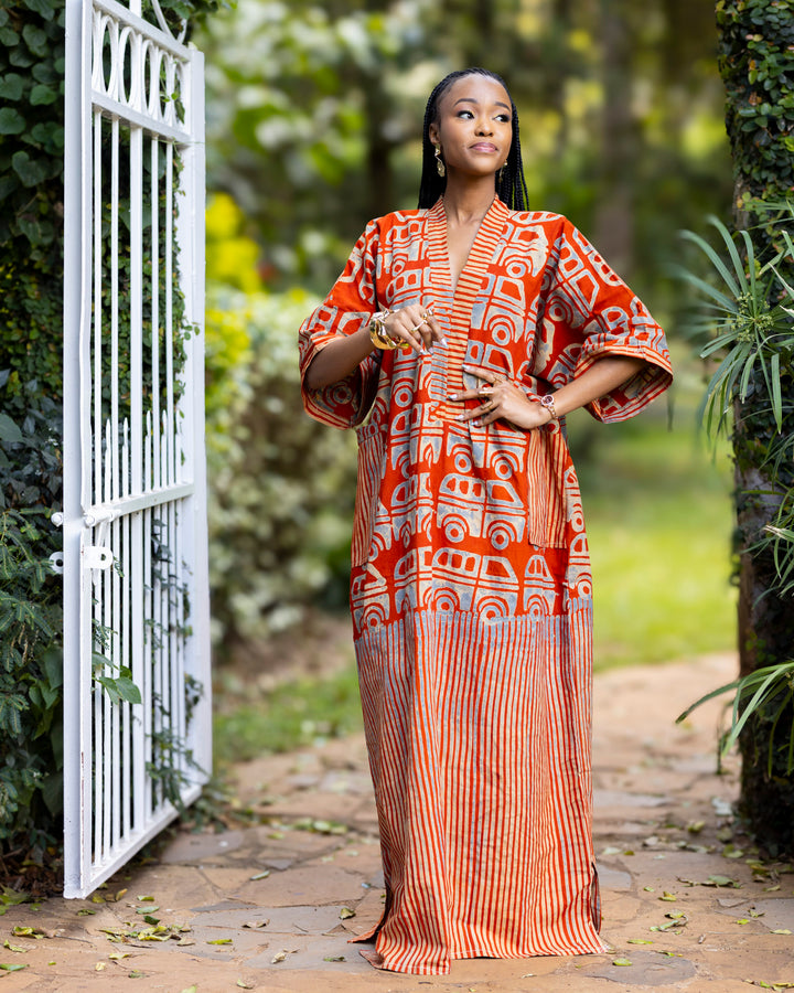 - The Terracotta Kaftan is made from handcrafted batik print on 100% cotton.