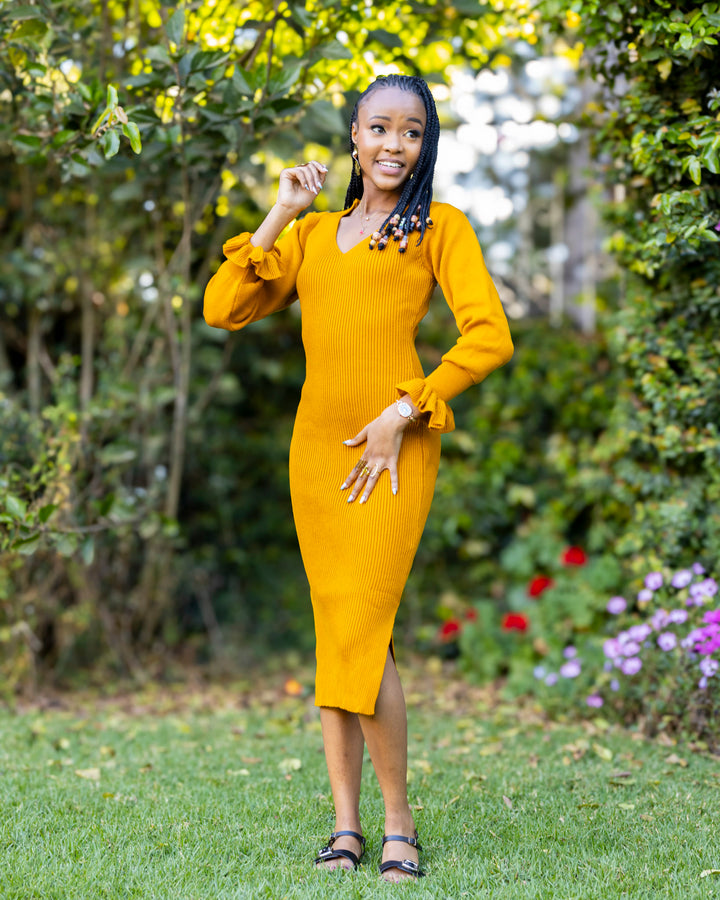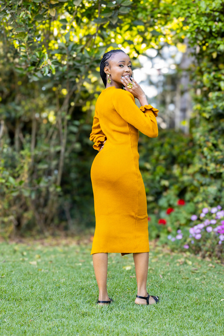 Effortlessly chic and made for comfort, this figure-hugging rust knit dress is your go-to for cozy elegance. Crafted from a soft, stretchy ribbed fabric, it skims your silhouette beautifully while allowing easy movement.